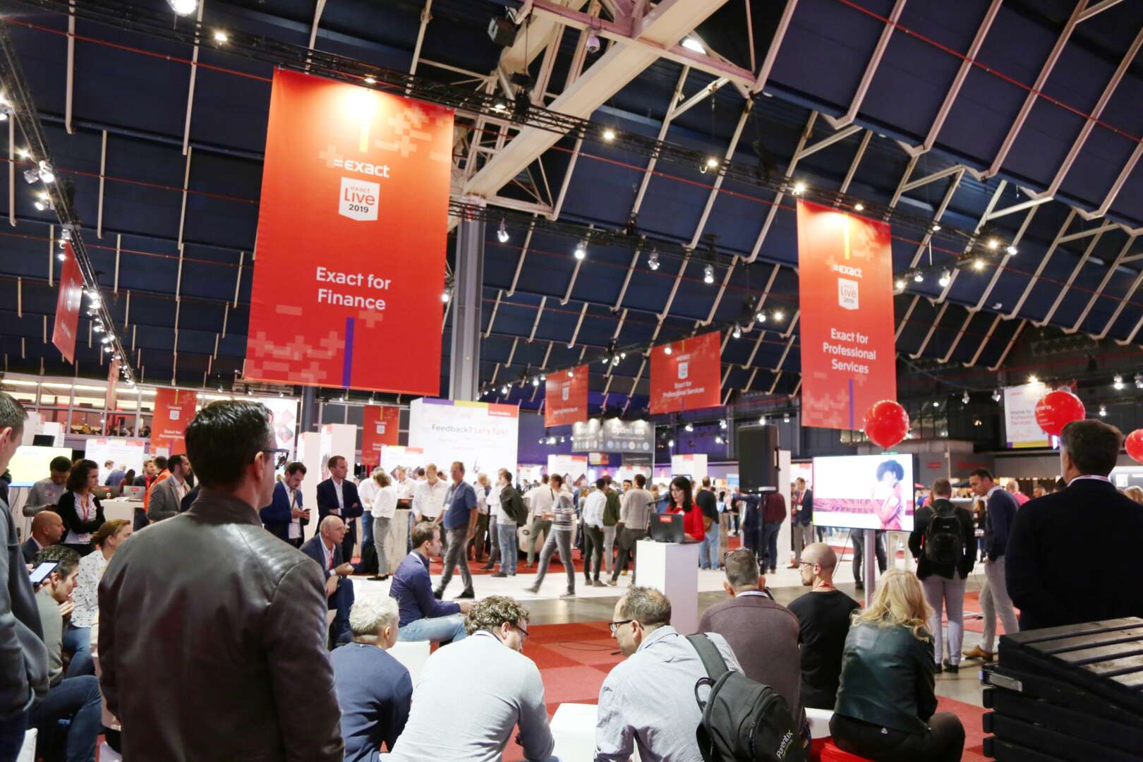 For Exact Live, we transformed the entire exhibition hall into a multimedia experience with various booths as part of it. An impressive entrance with huge screens on either side and a plenary hall for up to 5,000 visitors completed the whole setup. And did we mention that we realized the entire trade show floor on-site within 24 hours? That's right!