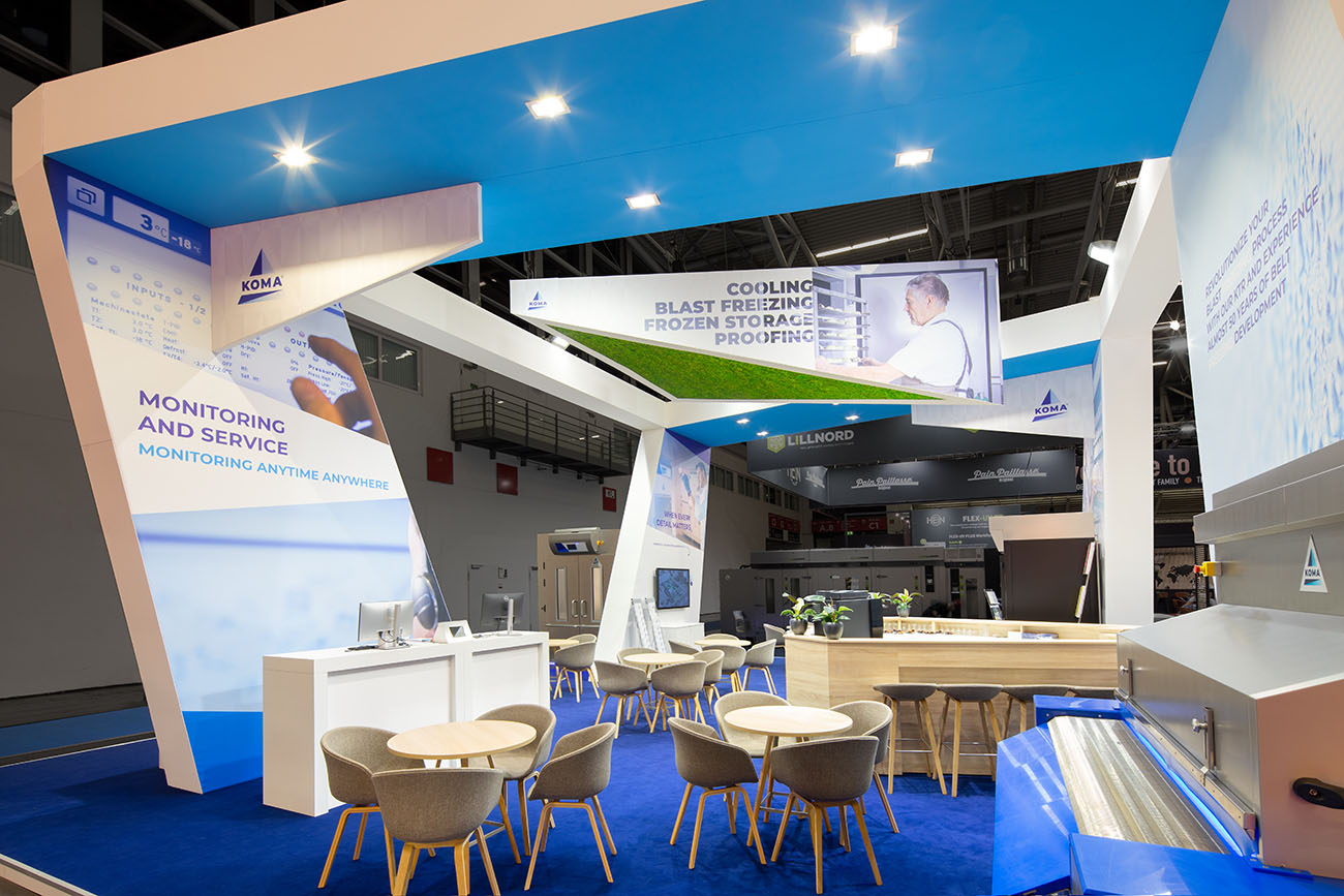 Green & Innovative: For KOMA, we designed an exhibition stand with an unmistakable 'wow' effect. The goal was to communicate KOMA's message, emphasizing their transition to natural refrigerants and the introduction of the GreenBox, a future-proof CO2 unit.