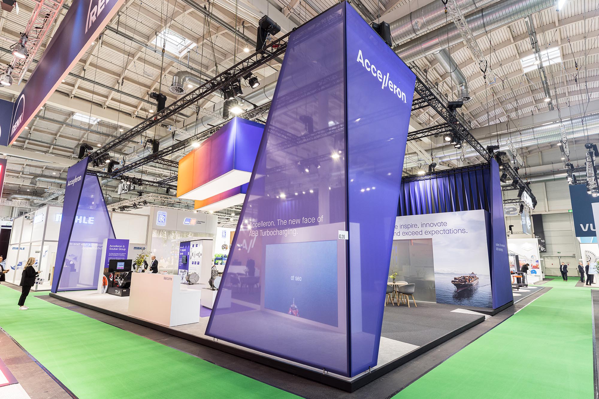 WOW! wat een prachtige presentatie zet Accelleron neer op de beurs SMMfair Hamburg. Hier houden wij van, dit standproject heeft gewoon álles. Een hoog afwerkingsniveau, doordacht ontwerp, strakke lijnen en frisse kleuren.